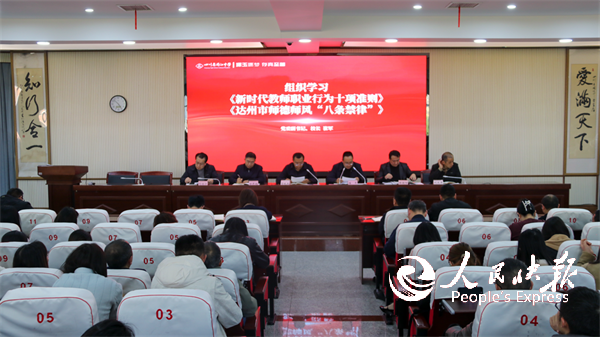 会议学习了《新时代教师职业行为十项准则》《达州市师德师风“八条禁律”》《中小学教师违反职业道德行为处理办法(2018年修订)》《四川省中小学教师违反职业道德行为处理实施细则》等文件条规,对全校师德师风建设提出了新的历史方位下的更高要求,引导全体教师知准则、守底线、明敬畏。